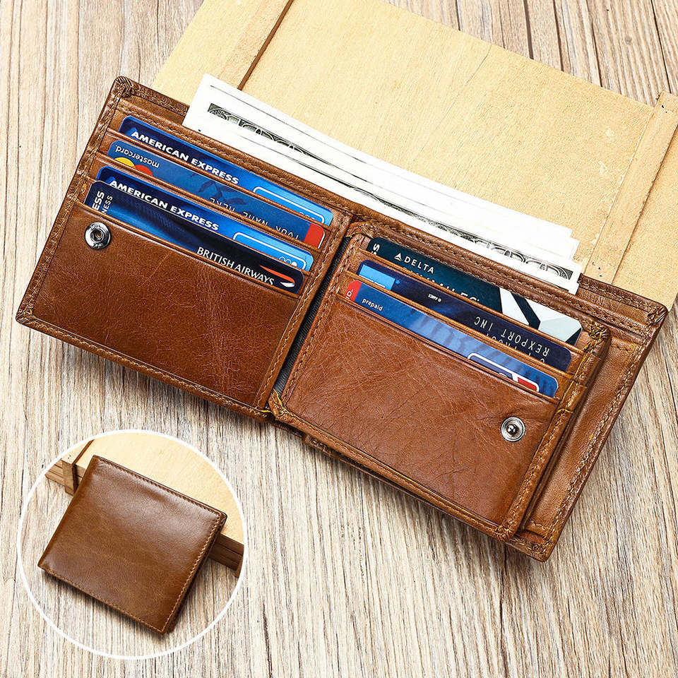 กระเป๋าสตางค์สำหรับผู้ชายกระเป๋าสตางค์หนังแท้แบบพับสองด้านสำหรับผู้ชายกระเป๋าสตางค์แบบมีช่องใส่เหรียญไว้ด้านหน้ามีช่องใส่บัตรแบบหนัง