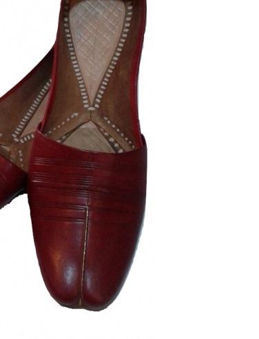 Khussa เครื่องหนังลายสำหรับผู้ชาย,เครื่องแต่งกายแฟชั่นสไตล์ปัญจาบ Khussa ย้อมสีน้ำตาลแดง/ปักลายสีดำทองสำหรับงานแต่งงาน
