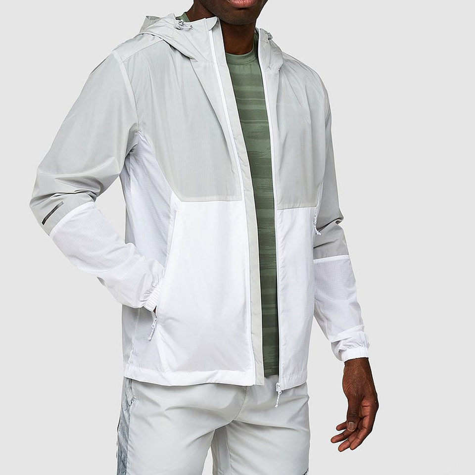 เสื้อแจ็คเก็ตกันลมบุรุษ สีขาวเทา แบบมีฮู้ด ซิปหน้า สไตล์ลำลอง สำหรับออกกำลังกาย แฟชั่นสตรีทแวร์ เสื้อโค้ทสำหรับกิจกรรมกลางแจ้ง