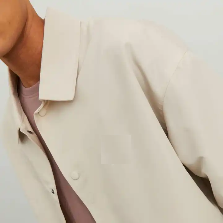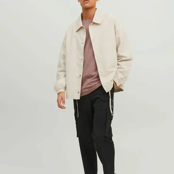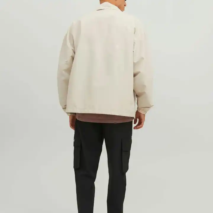แจ็กเก็ตกลางแจ้งแขนยาวผ้าโพลีเอสเตอร์สำหรับผู้ชายเสื้อกันลมทรงหลวมสีเรียบ