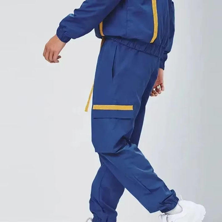 ชุดวินด์เบรกเกอร์ผู้ชายลำลองสไตล์สปอร์ตแบบสองชิ้น เสื้อแจ็คเก็ตมีฮู้ดแบบซิปและกางเกงขายาว ชุดกีฬาระบายอากาศได้ดี เหมาะสำหรับวิ่ง เดินทาง และกิจกรรมกลางแจ้ง