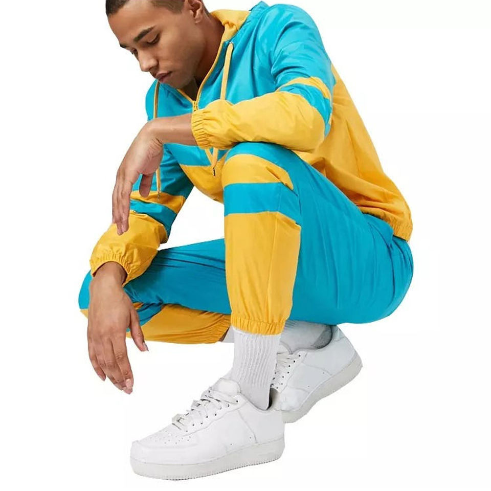 ชุดวอร์มกันลมสำหรับผู้ชาย ผลิตจากโพลีเอสเตอร์ 100% ระบายอากาศได้ดี แห้งเร็ว กันน้ำ รับสกรีนโลโก้ตามแบบ บริการ OEM