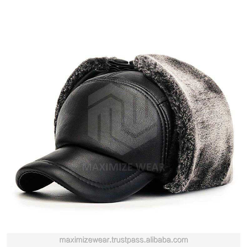 PU Leather Ushanka Warm Faux Fur Windproof Peaked Cap