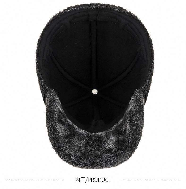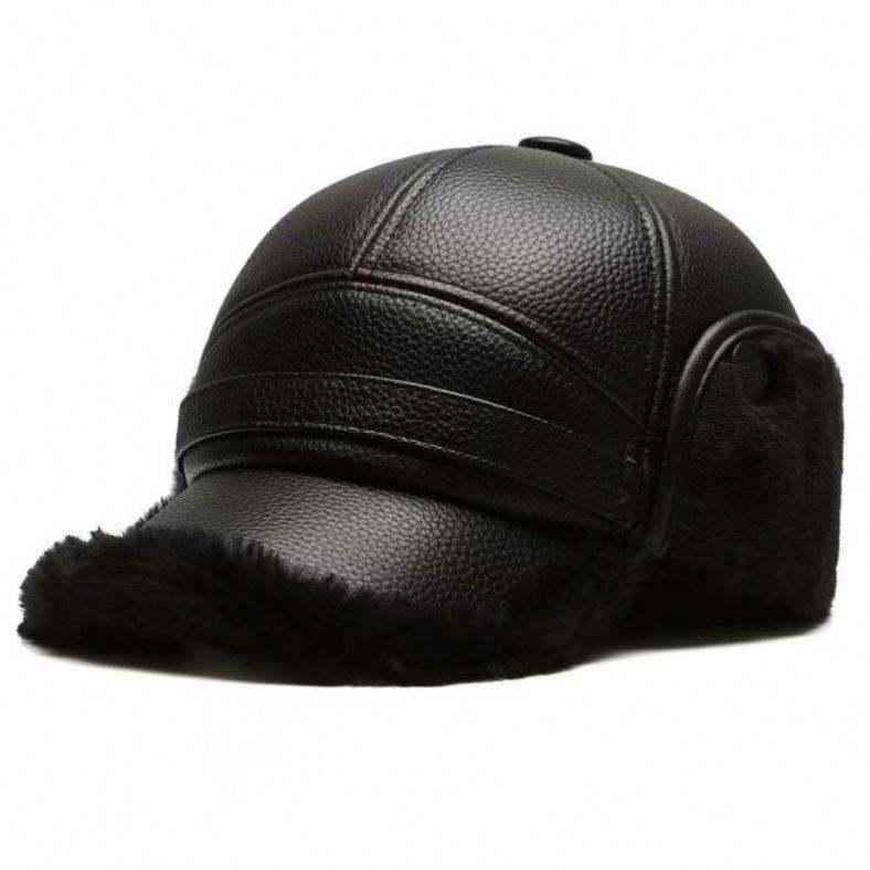 หมวกหนัง PU หนาอุ่น 6 แผง สำหรับผู้ชาย ฤดูหนาว คุณพ่อ คุณปู่ โดบี้ สปอร์ตี้ ป้องกันหูจากความหนาว