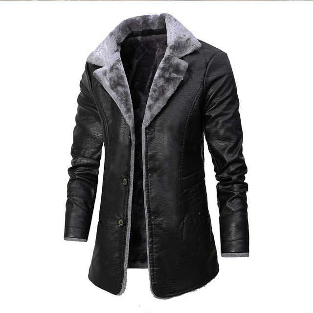 Men Winter Long Thick PU Leather Jacket Streetwear Casual Business Coat Warm Outerwear with Pockets Stylish Mes Leather Jackets