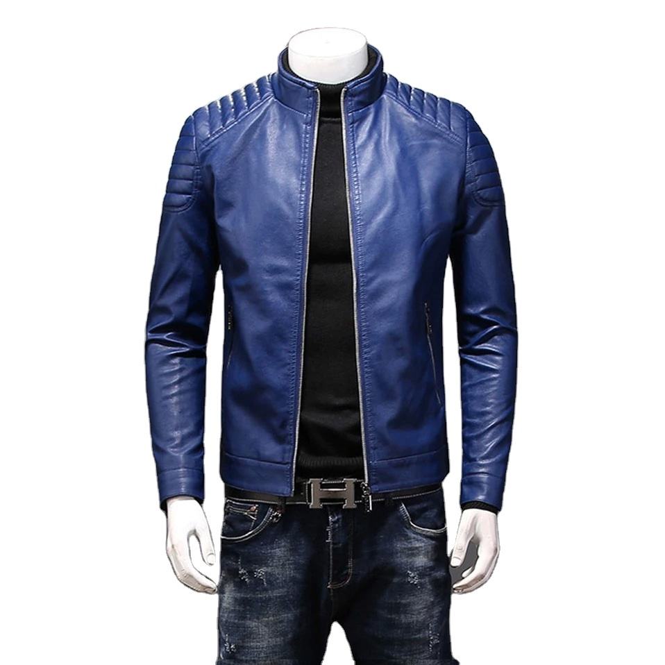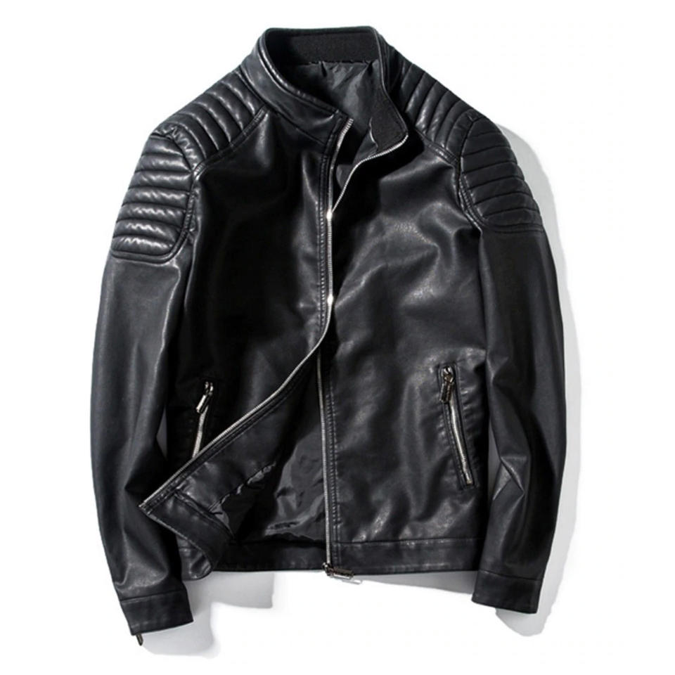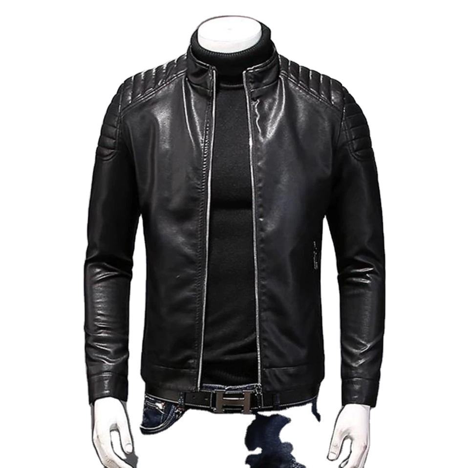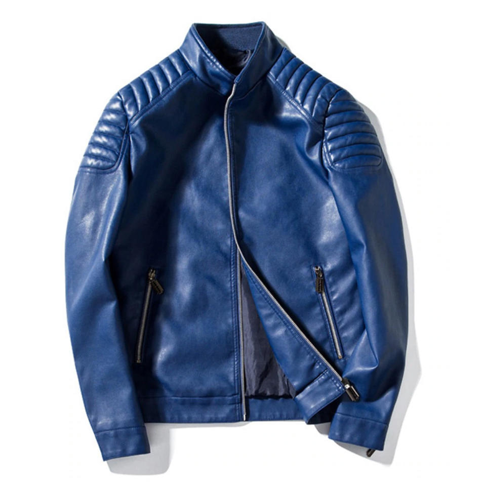 Men Winter Motorcycle Faux Leather Jacket Windproof Zipper Biker Fashion Casual Business Coat