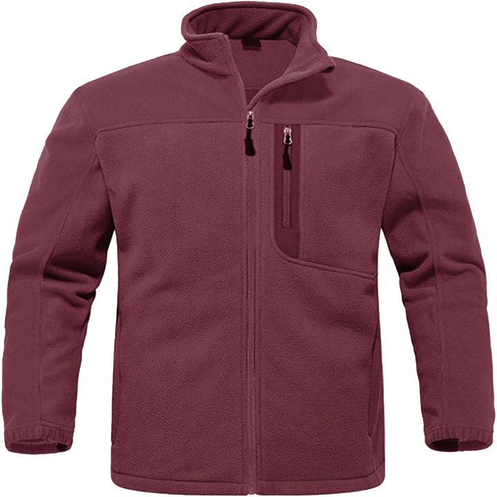 เสื้อแจ็คเก็ตขนแกะสำหรับผู้ชายแบบซิปเต็มตัว คอตั้ง พร้อมโลโก้ด้านหน้า