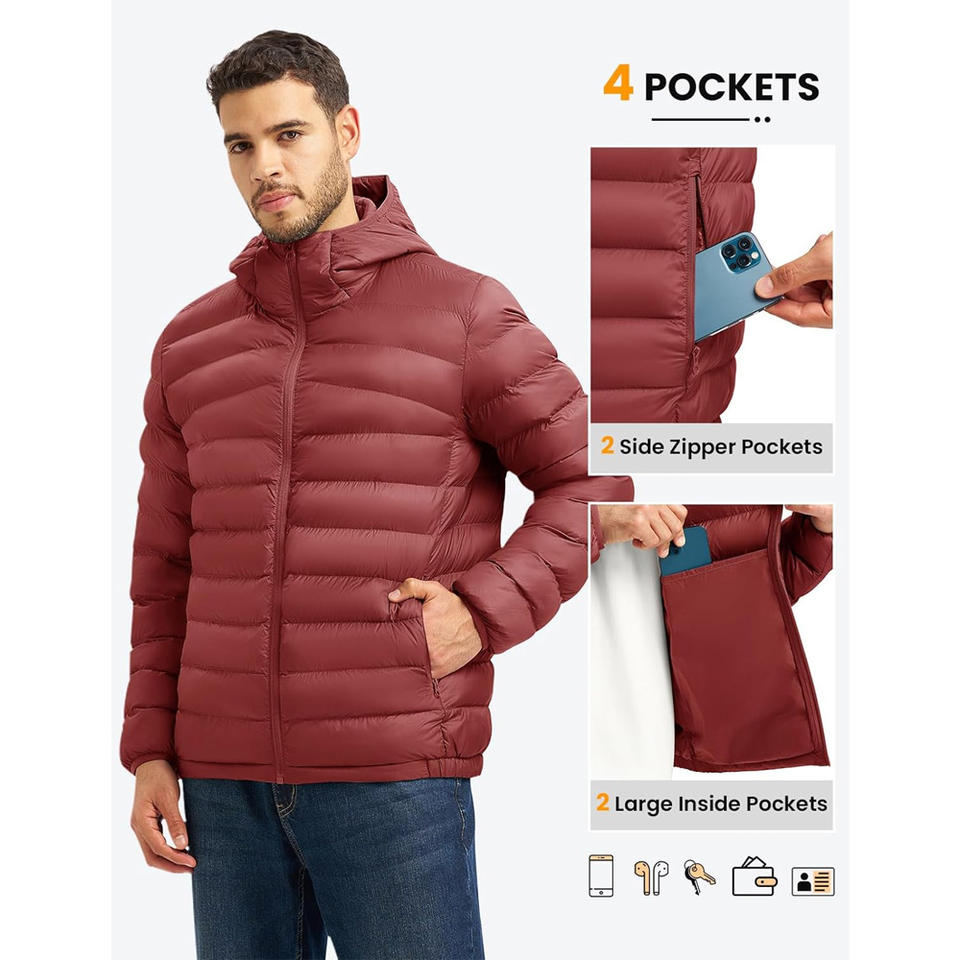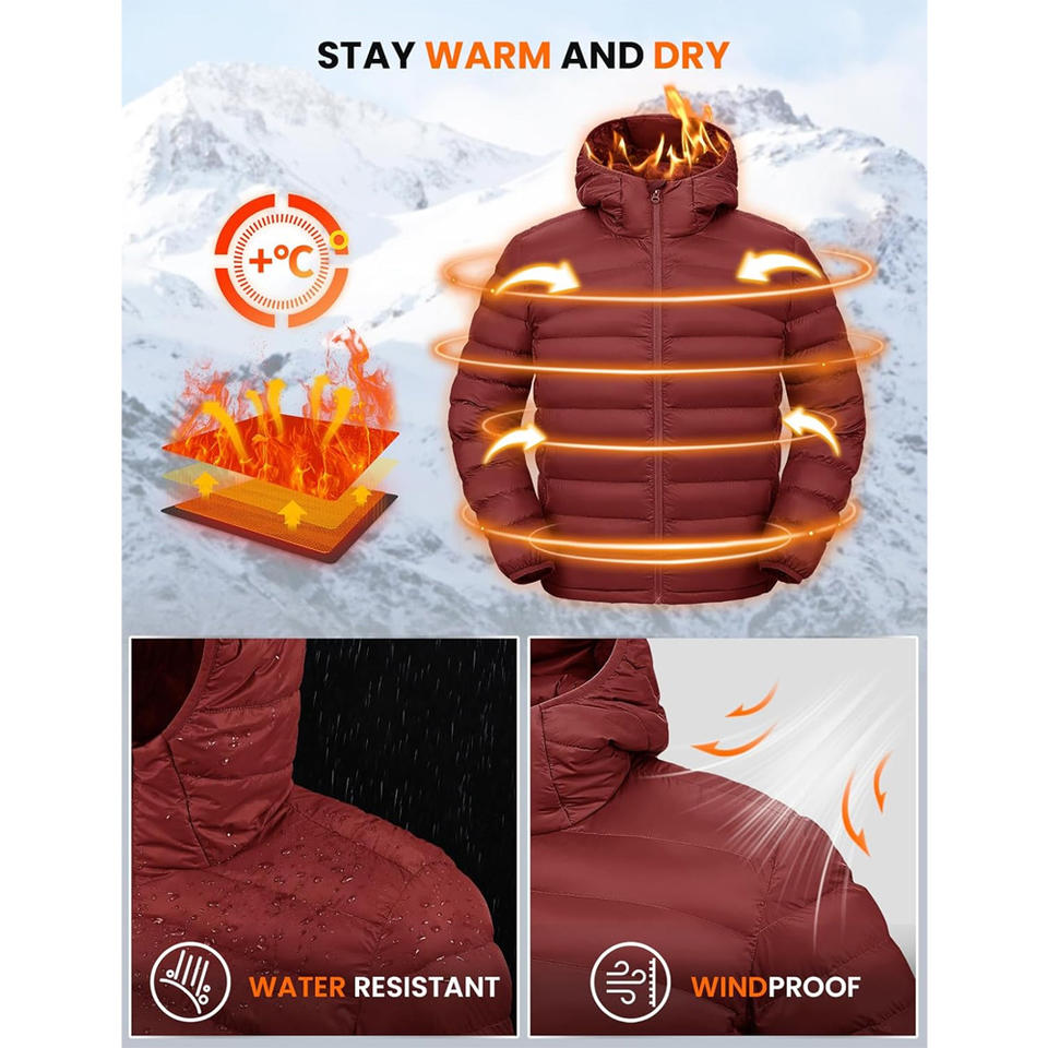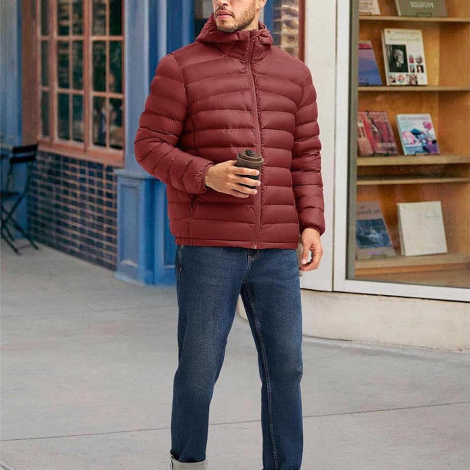 เสื้อแจ็คเก็ตพัฟเฟอร์ผู้ชายสำหรับฤดูหนาว แบบยาว สกรีนโลโก้ด้านหน้าได้ บุหนา ทนทาน เย็บอย่างดี ซิปปลอดภัย มีฮู้ด