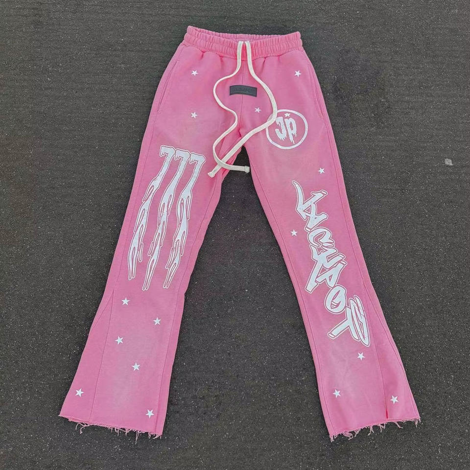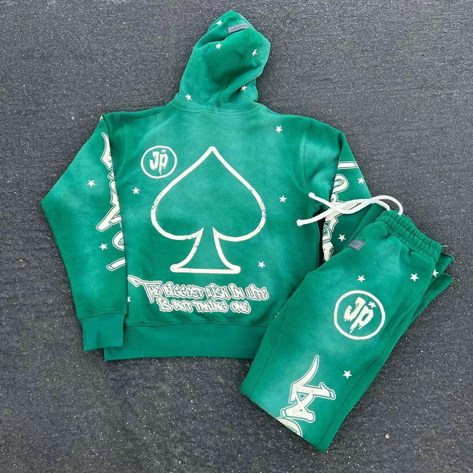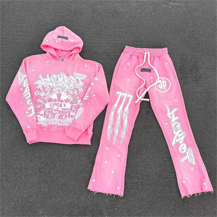 ชุดวอร์มผู้ชายแบบขาบานทรงเอฟเฟกต์ยีนส์ฟอกสี 3 มิติ พร้อมเสื้อฮู้ดดี้ สไตล์ดิสเทรส