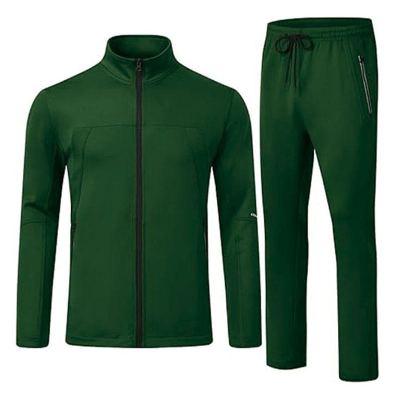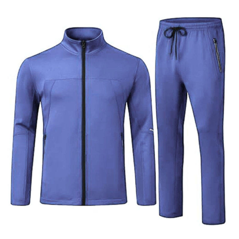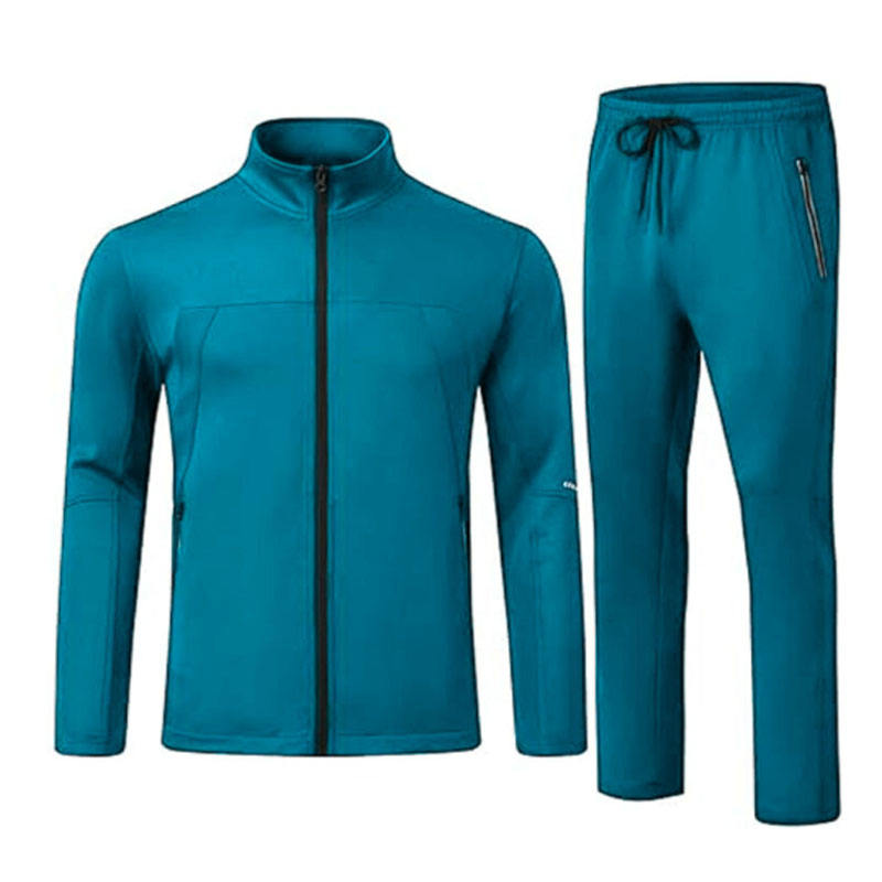 Men Winter Solid Tracksuit Breathable Eco-Friendly Polyester/Cotton Long Sleeve Stand Collar Drawstring Elastic Custom