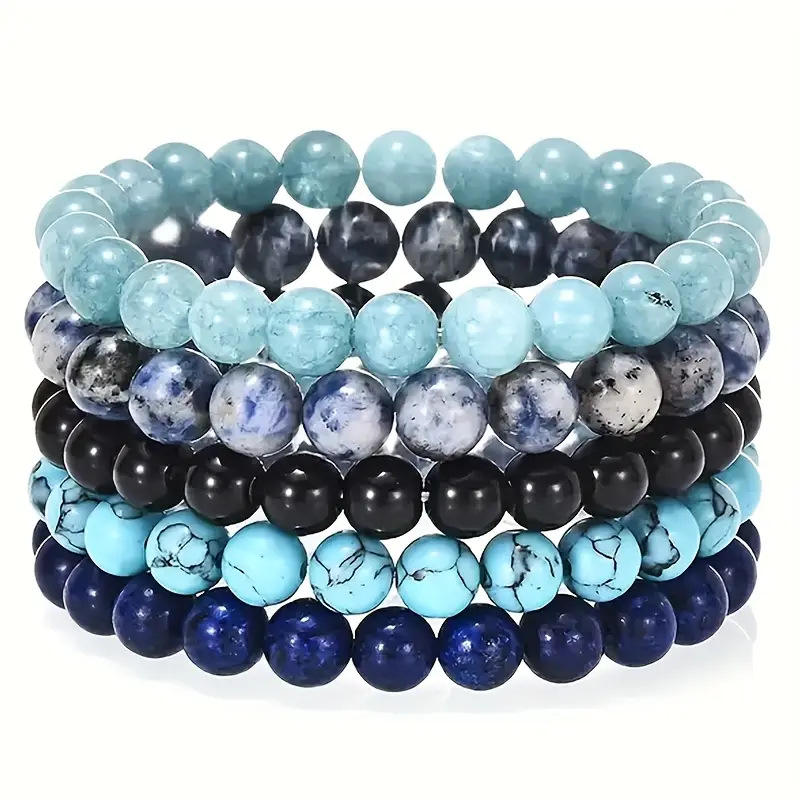 กำไลข้อมือพลอยธรรมชาติ8มม. สำหรับผู้ชายผู้หญิงกำไลข้อมือคู่สำหรับโยคะของขวัญกำไลข้อมือหินโมรา