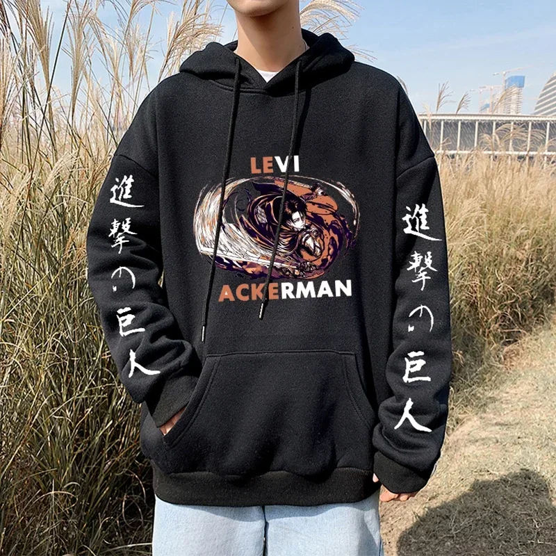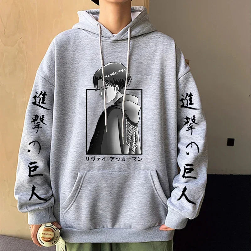 เสื้อสเวตเตอร์มีฮู้ดผู้ชายผู้หญิงลายโจมตีไททันลีวายส์ shingeki NO kyojin มีฮู้ดไซส์ใหญ่พิเศษฮาราจูกุสตรีทแวร์