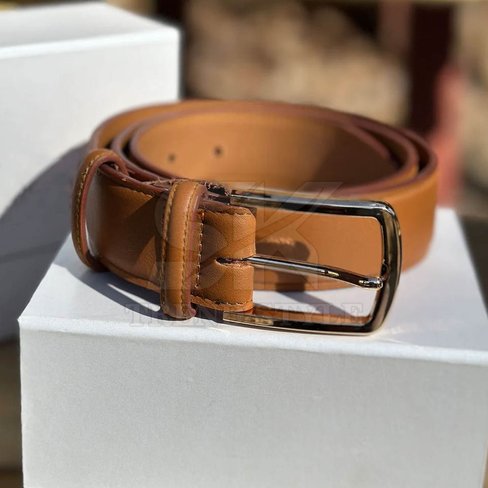 เข็มขัดหนังแท้สีเดียว ดีไซน์หรูหราสำหรับผู้ชายและผู้หญิง เหมาะสำหรับใส่ทำงานและงานปาร์ตี้