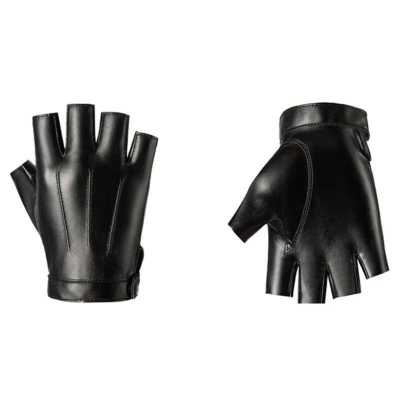 Unisex Leather Full Finger Windproof Breathable Touchscreen Compatible Outdoor Tactical Driving Gloves Hook Loop Closure Black