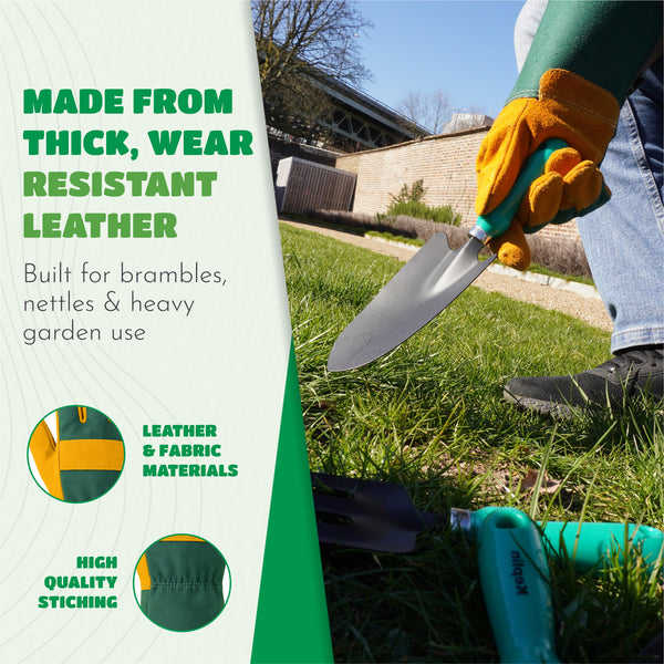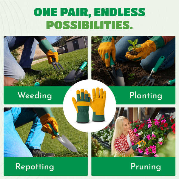 ถุงมือทำงานหนังวัวคุณภาพเยี่ยมสำหรับผู้ชายและผู้หญิง, ถุงมือหนังวัวมีหนามและทนต่อการเจาะระบายอากาศและทนทานสำหรับทำสวน