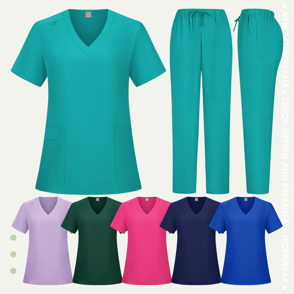 ชุดยูนิฟอร์มพยาบาลแขนสั้นสำหรับผู้ชายผู้หญิงชุดเครื่องแบบโรงพยาบาลผ้ายืดสำหรับฤดูร้อน