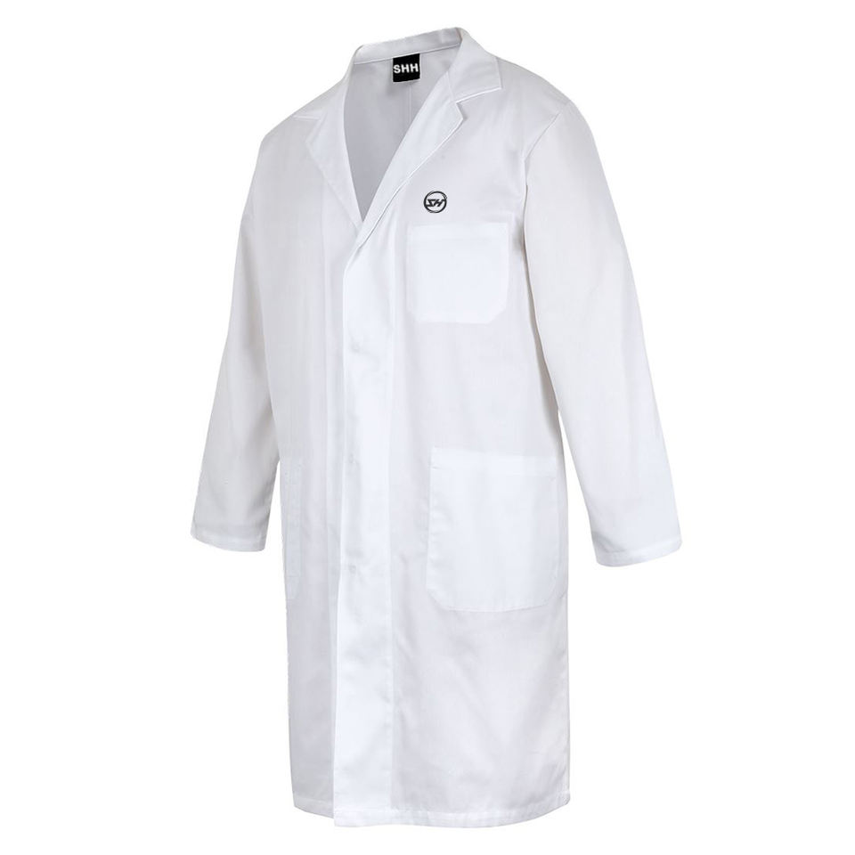 เสื้อกาวน์แพทย์แบบยูนิเซ็กซ์ ติดกระดุมด้านหน้า ชุดยูนิฟอร์มโรงพยาบาล ผ้าทอผสมฝ้ายและโพลีเอสเตอร์ ปรับแต่งได้ เหมาะสำหรับนักเรียนวิทยาศาสตร์