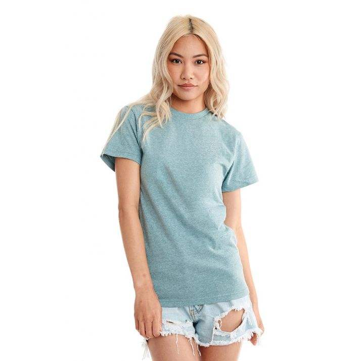 เสื้อยืดคอกลมผ้าคอตตอนอินทรีย์ใส่ได้ทั้งชายและหญิง,คอลูกเรือโพลีรีไซเคิล