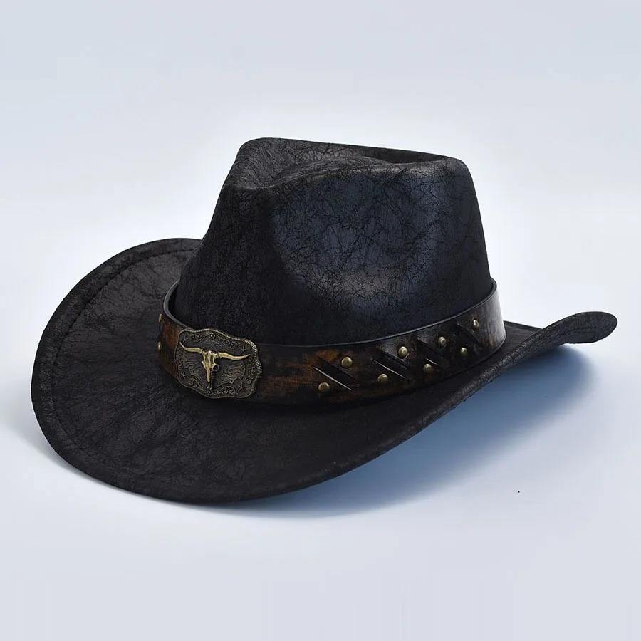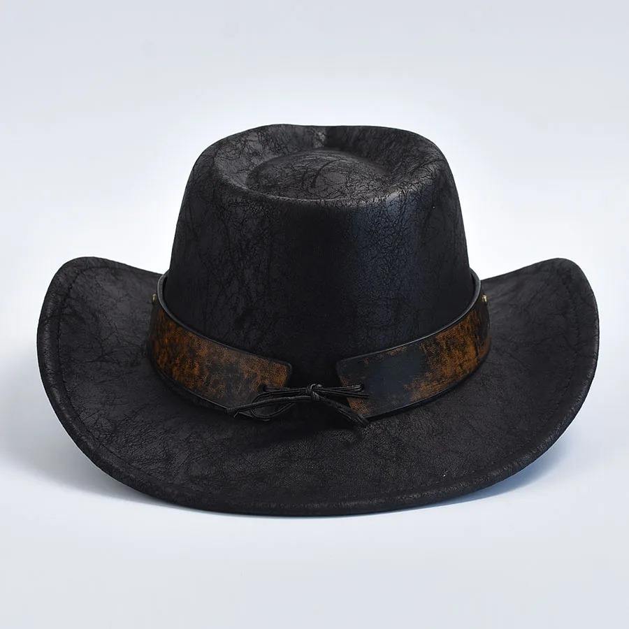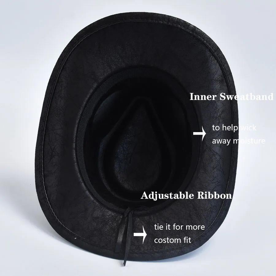 หมวกคาวบอยสไตล์ตะวันตกสำหรับผู้ชายและผู้หญิง ทำจากหนังแท้ วินเทจ สำหรับสุภาพบุรุษและคาวเกิร์ล หมวกแจ๊ส ซอมเบรโร ปรับขนาดและสีได้ตามต้องการ ผลิตจากโรงงาน