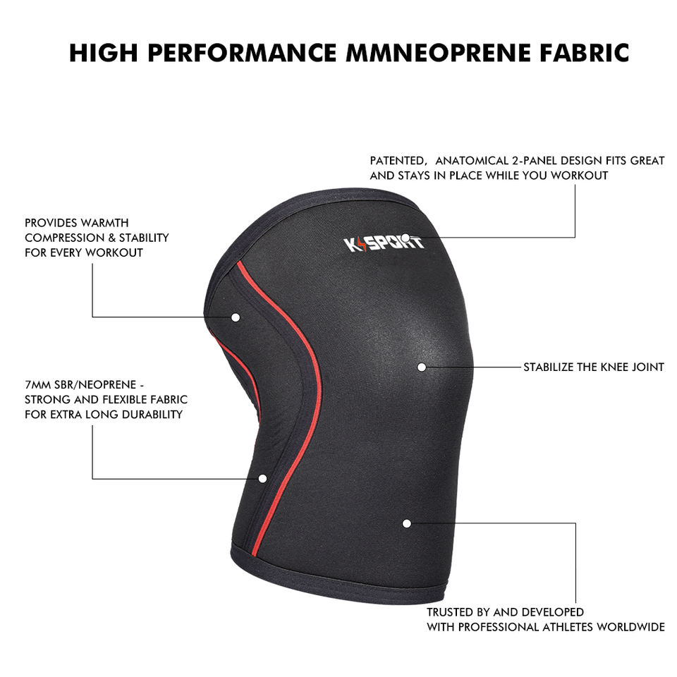 สนับเข่าระบายอากาศได้ดีนีโอพรีน7มม. สำหรับผู้ชายและผู้หญิงไม่ลื่นรองรับการแข่งขัน ksport สีดำ