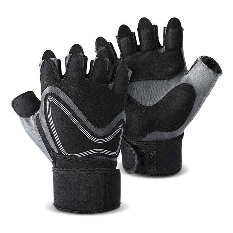 ถุงมือออกกำลังกายพร้อมสายรัดข้อมือ ป้องกันการลื่นไถล ปกป้องฝ่ามือเต็มรูปแบบ สำหรับฟิตเนส กีฬา และยกน้ำหนัก
