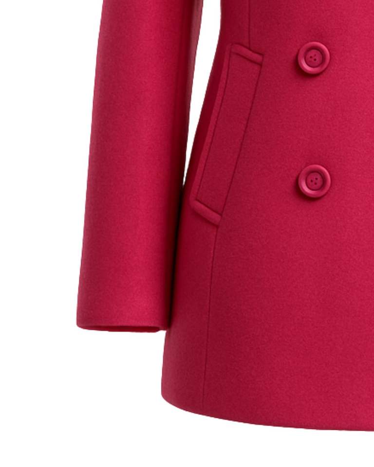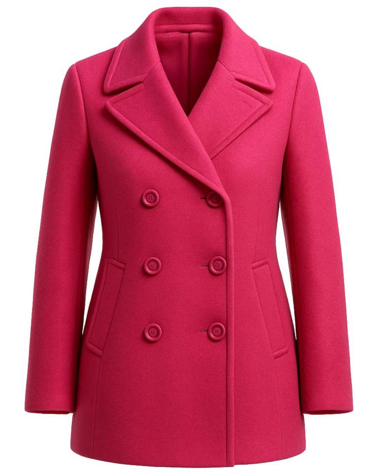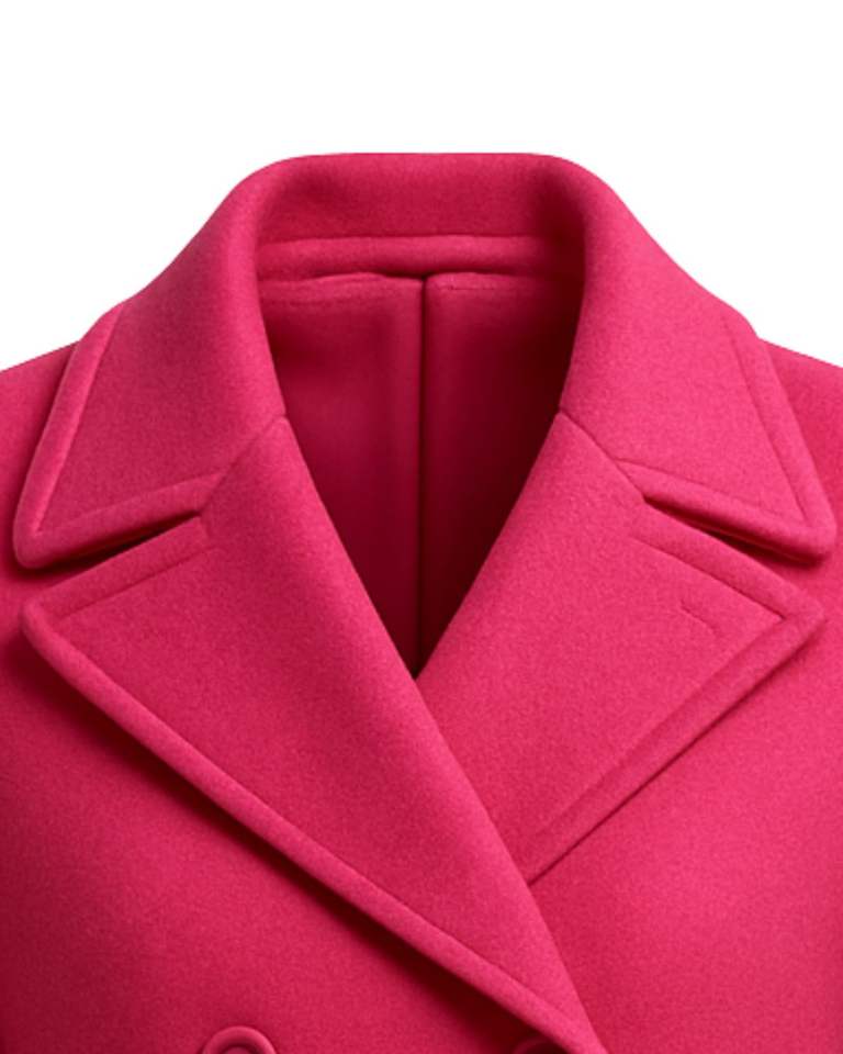 แจ็กเก็ตสั้นพร้อมปกคอเสื้อขนแกะกระดุมสองแถวสำหรับฤดูหนาวเสื้อนอกสีชมพูบานเย็น