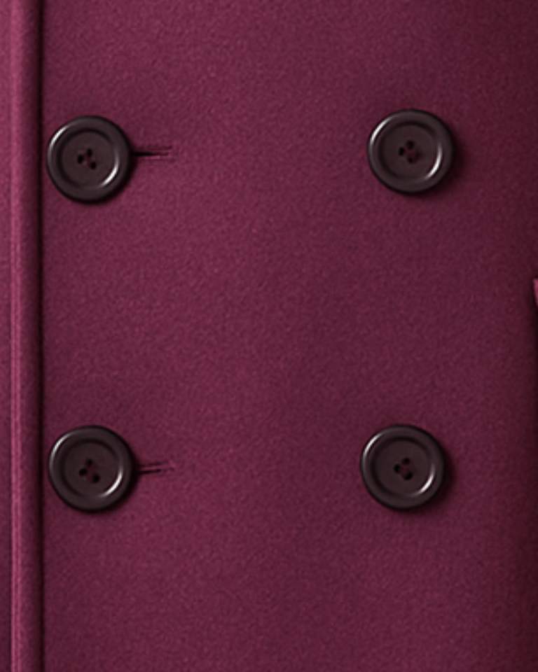 Men Wool Blend Double Breasted Peacoat Winter Long Jacket with Lapel Collar and Flap Pockets in Wine Purple Burgundy Color OEM