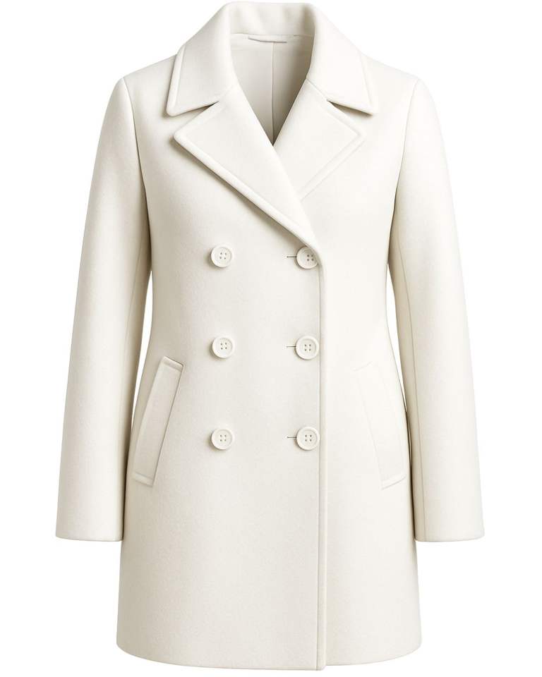 แจ็กเก็ตขนแกะกระดุมสองแถวสำหรับผู้ชายเสื้อโค้ทตัวยาวมีปกปกเสื้อในฤดูหนาวเสื้อนอกสีขาวหิมะสีขาวบริสุทธิ์เสื้อแบบคลาสสิก