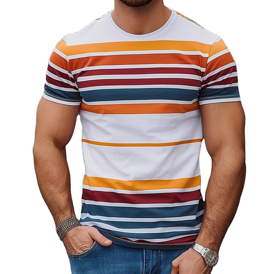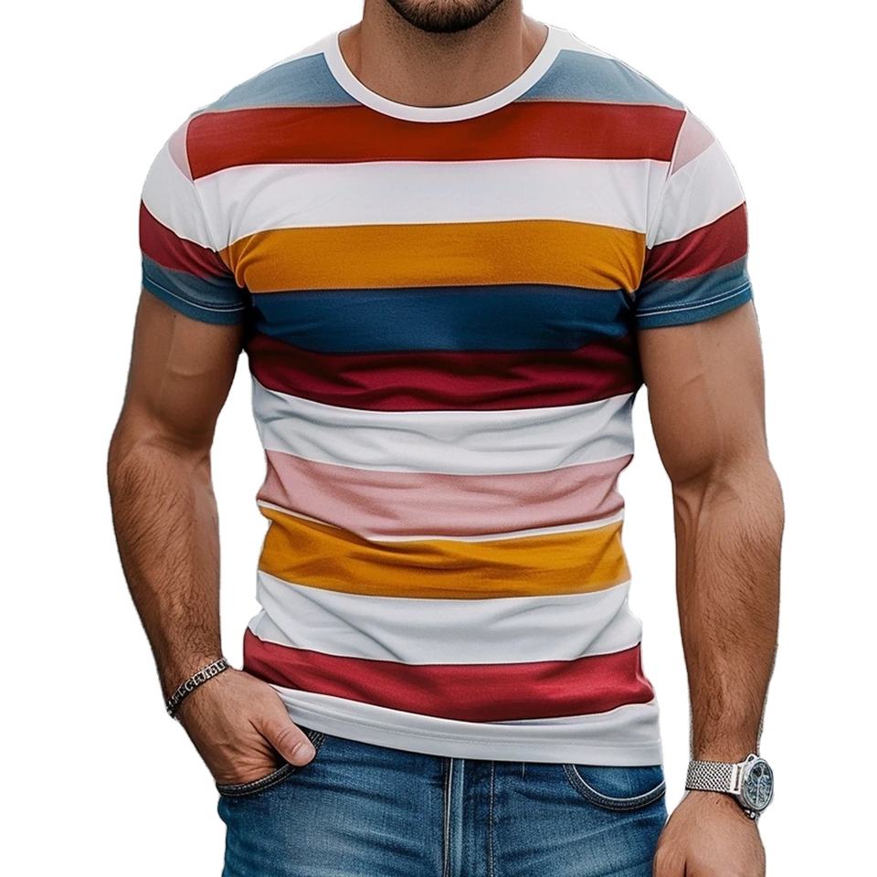 Men Work Shirts Men T-Shirts Tops Gifts men Everyday Stripe Print Short Sleeve Crew Neck T-Shirt Tops Gym Tops