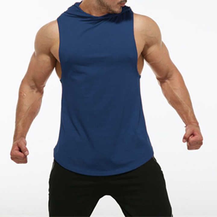 เสื้อแขนกุดมีฮู้ดสำหรับผู้ชายเสื้อกล้ามออกกำลังกายแบบมีฮู้ดใส่เล่นกีฬาเพาะกาย