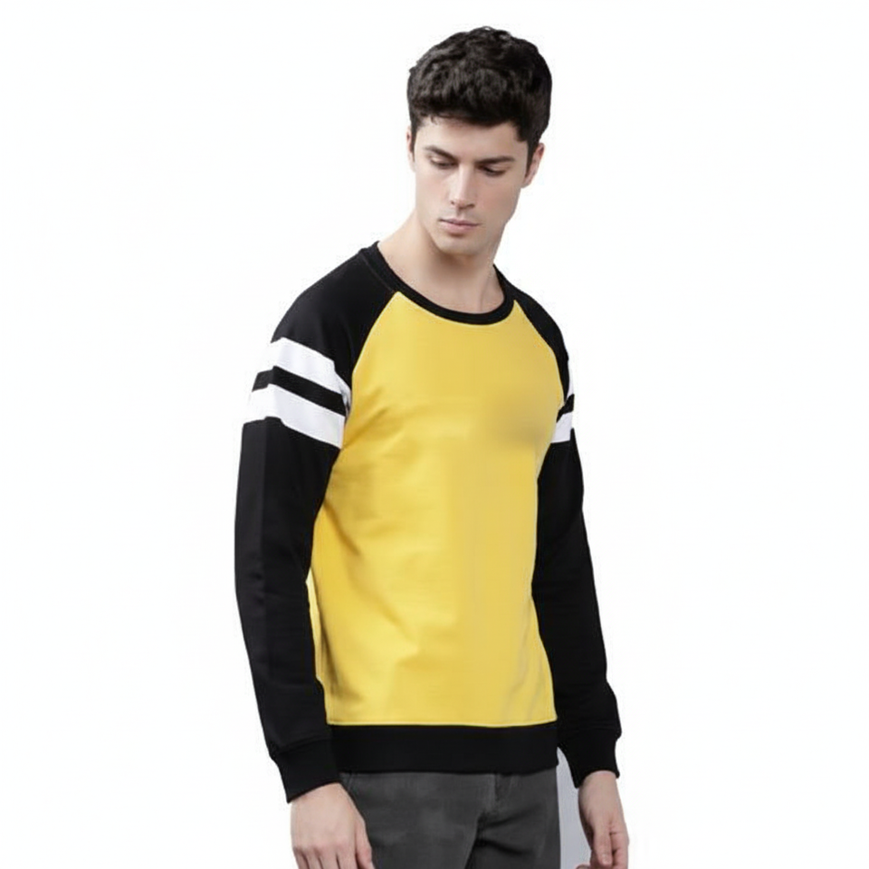 เสื้อสเวตเตอร์ถักมีซับในสีเหลืองดำสำหรับผู้ชาย ลำลอง มีสไตล์ แขนยาว ผ้าเนื้อนุ่ม สวมใส่สบาย แฟชั่นสตรีทแวร์สุดฮิต