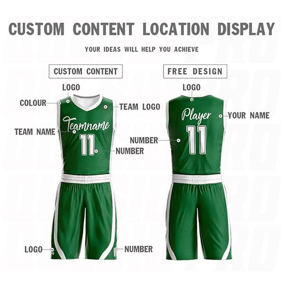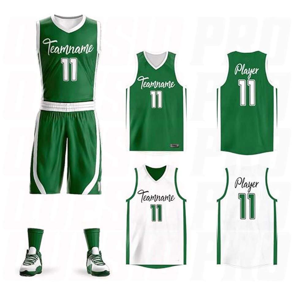 เสื้อบาสเก็ตบอลแบบใส่ได้สองด้านสำหรับผู้ชายและเยาวชน สีเขียวและสีขาว ชุดกีฬาแบบมืออาชีพที่ระบายอากาศได้ดี พิมพ์ชื่อและหมายเลข ชุดกีฬาทีม