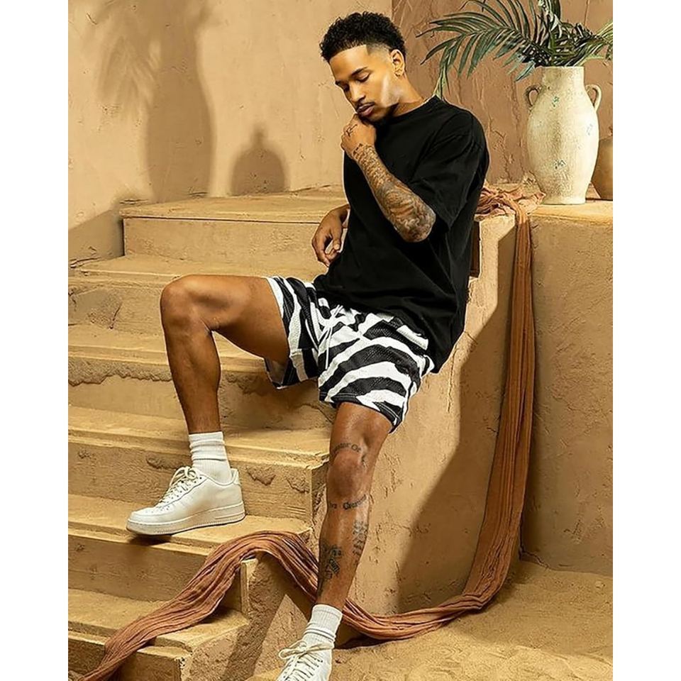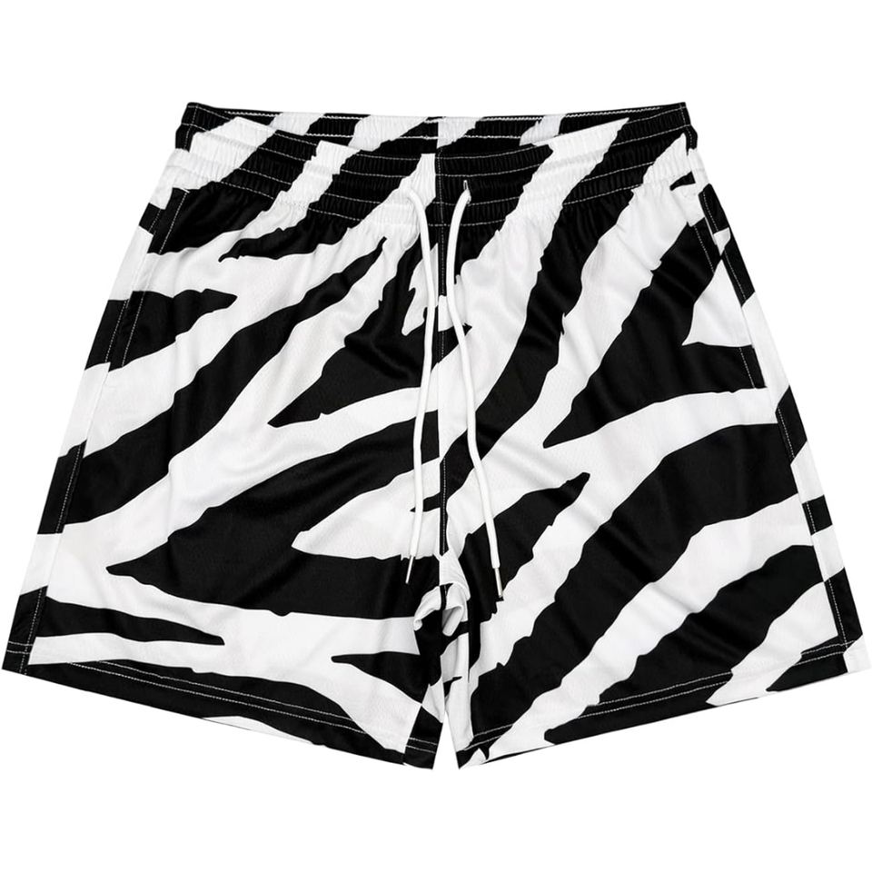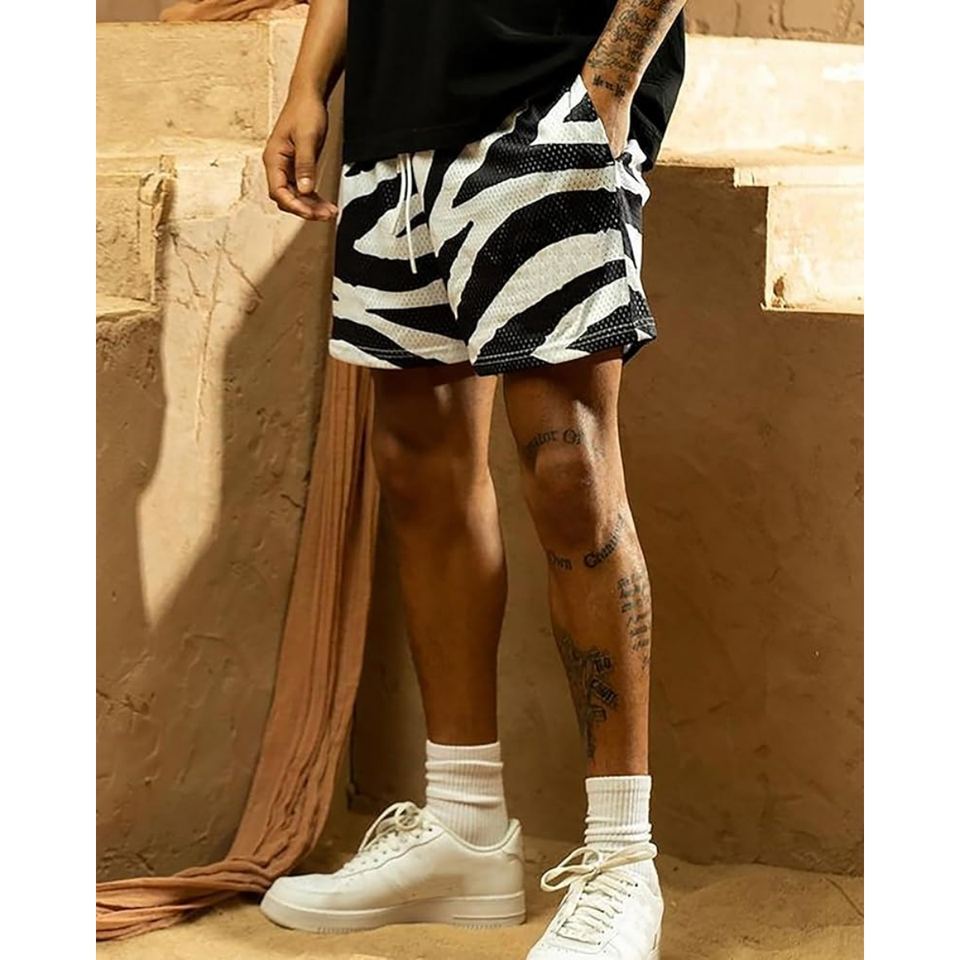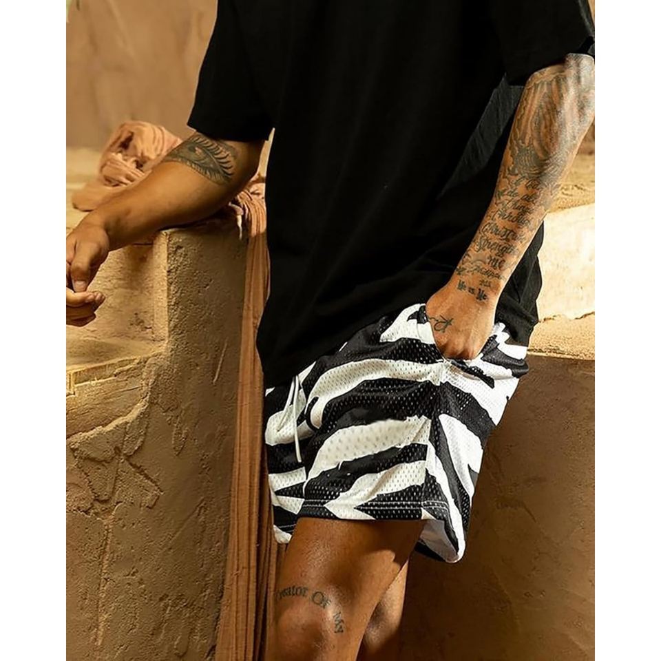 กางเกงขาสั้นกีฬาลายม้าลายสำหรับผู้ชาย ผ้าตาข่าย พิมพ์ลายกราฟิกแบบระเหิด น้ำหนักเบา ระบายอากาศได้ดี เหมาะสำหรับเล่นบาสเก็ตบอล ออกกำลังกาย หรือใส่ลำลอง