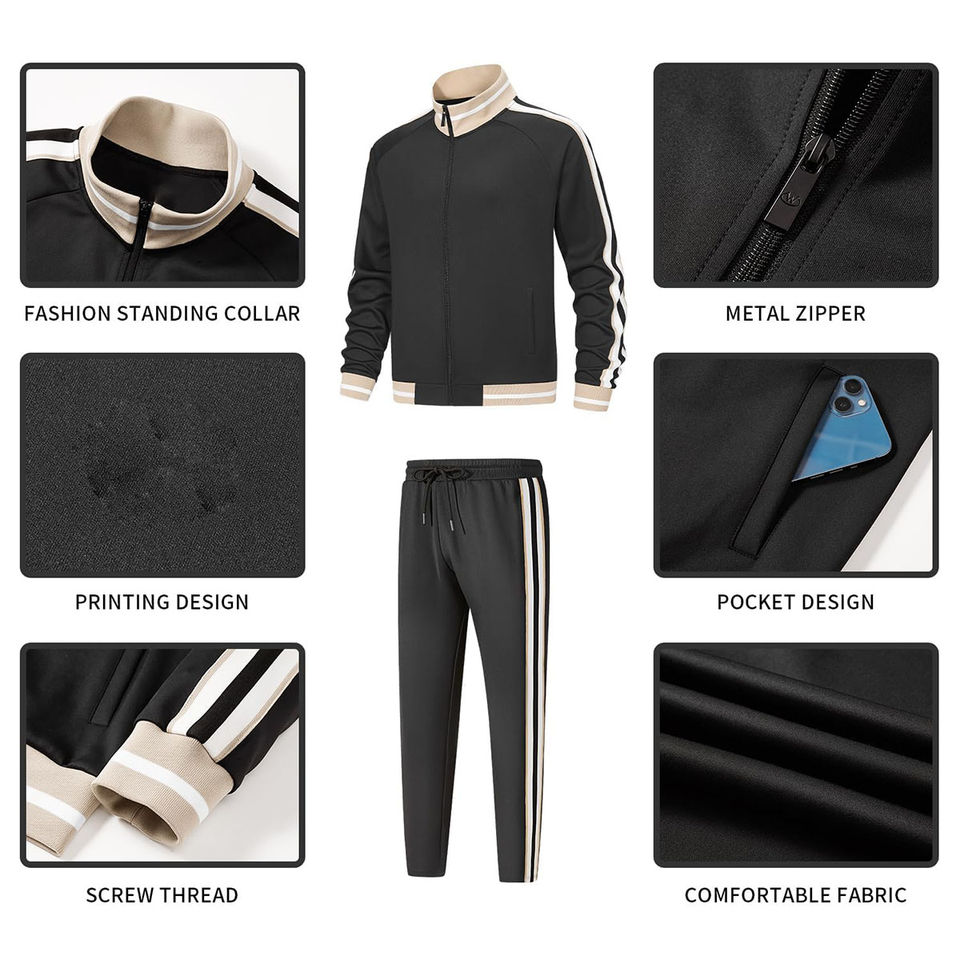 ชุดวอร์มมีซิปสำหรับผู้ชายสีดำและสีผิวคอตั้ง100% ขนแกะโพลีเอสเตอร์
