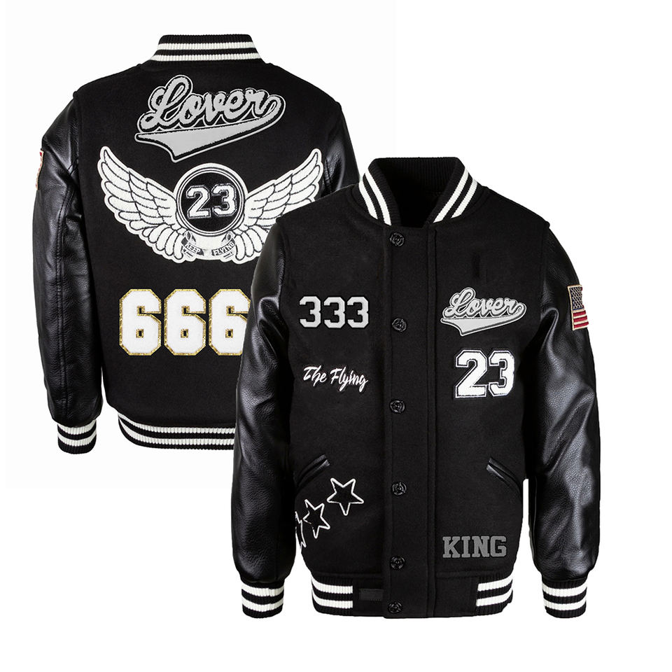 แจ็คเก็ตกีฬาเบสบอลแขนยาวสำหรับเด็กผู้ชายและผู้ชายแจ็คเก็ตกีฬาเบสบอลทรงโอเวอร์ไซส์พิมพ์ลายกราฟิกหลากสี