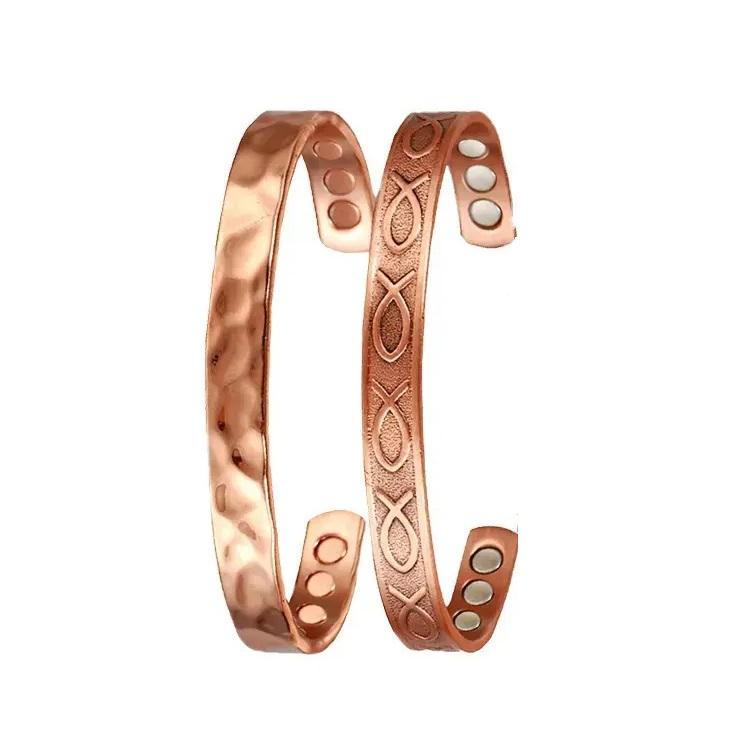 กำไลข้อมือแม่เหล็กทองแดงบริสุทธิ์สำหรับผู้ชายและผู้หญิงดีไซน์แตกต่างกันพร้อมกำไลข้อมือเครื่องประดับ6แม่เหล็ก