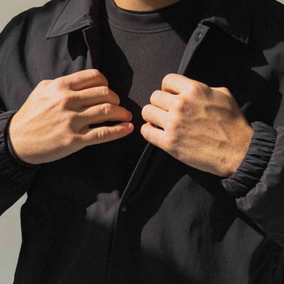 แจ็คเก็ตอเนกประสงค์ผู้ชายสีดำ, เสื้อผ้าแนวสตรีทผ้าคอตตอนน้ำหนักเบามีกระเป๋าทันสมัย