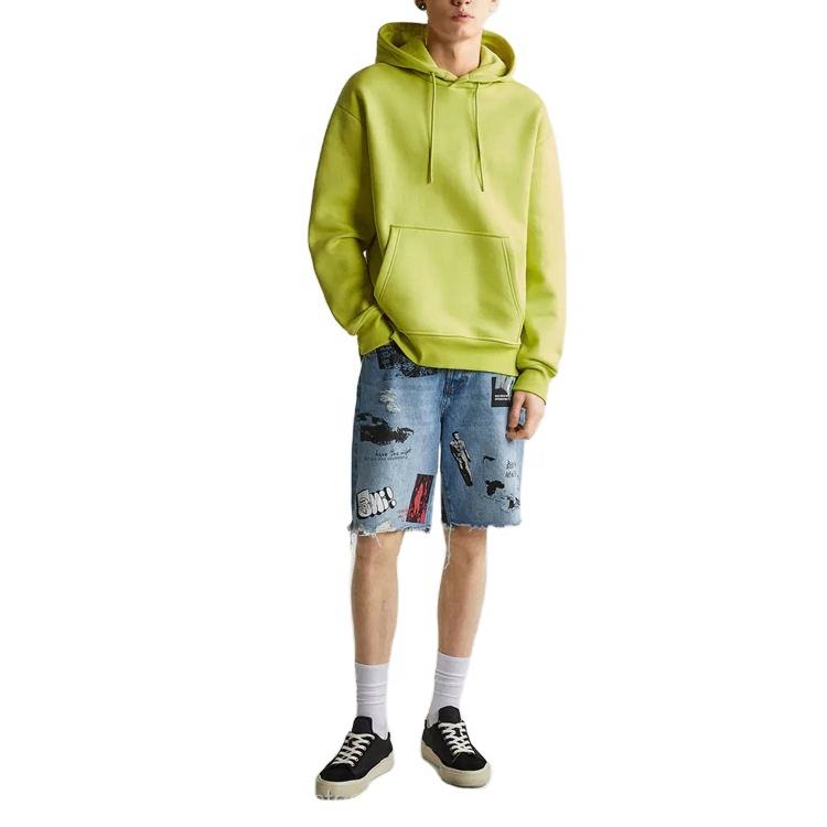 ชุดวอร์ม2ชิ้นเสื้อฮู้ดกันหนาวแบบมีฮู้ดและกางเกงขาสั้นผ้ายีนส์มีฮู้ดสำหรับผู้ชายชุดวอร์มผ้าฝ้าย100สีพื้น