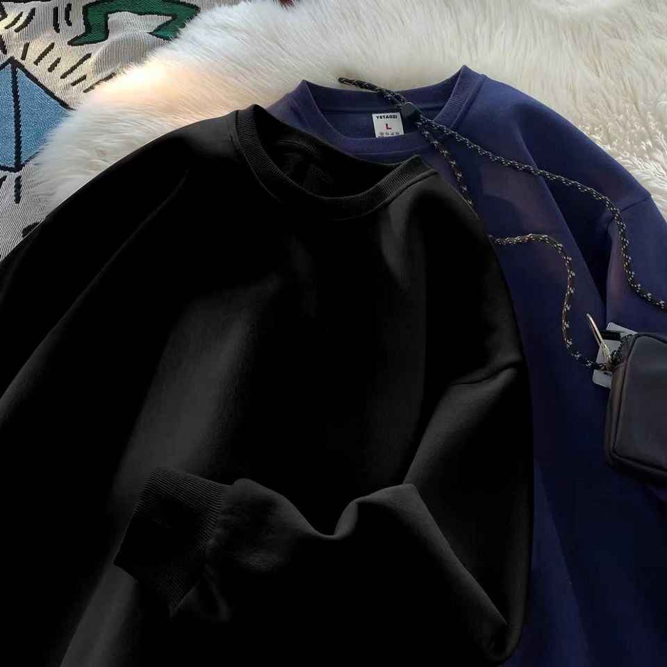 เสื้อแขนยาวคอกลมทรงหลวมสีทึบสำหรับผู้ชาย