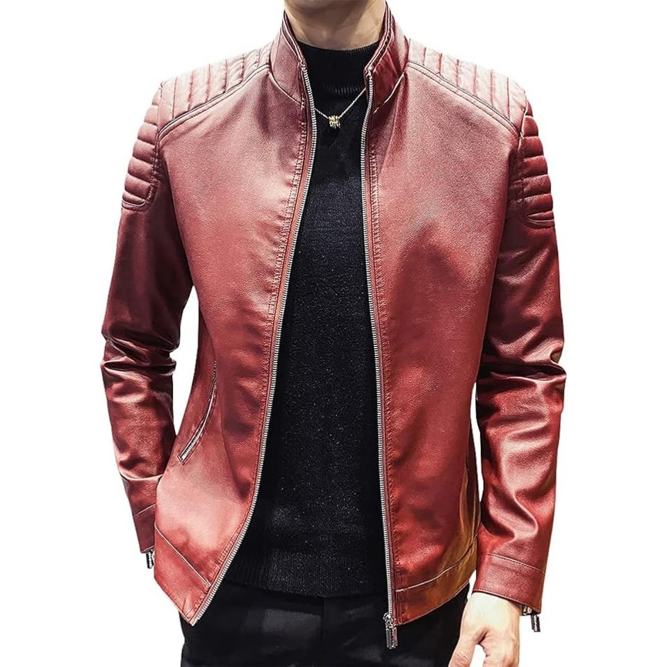 เสื้อแจ็คเก็ตหนังแกะแท้สำหรับผู้ชาย หนังแกะนุ่ม สวมใส่สบาย ทรงทันสมัย เสื้อคลุมแฟชั่นคุณภาพพรีเมียม