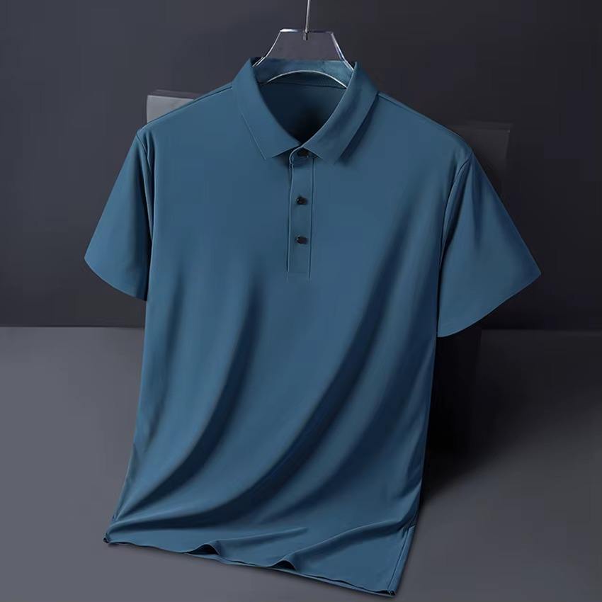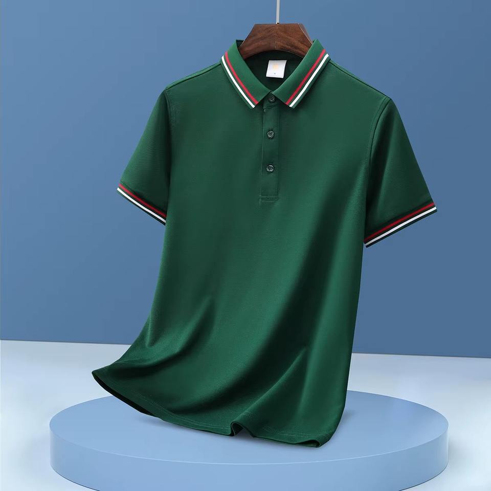 เสื้อโปโลผู้ชายผ้าคอตตอนเนื้อนุ่มผสมโพลีเอสเตอร์กันรอยยับทนทานอเนกประสงค์ดีไซน์แขนสั้นสำหรับสำนักงานการเดินทางและการพักผ่อน