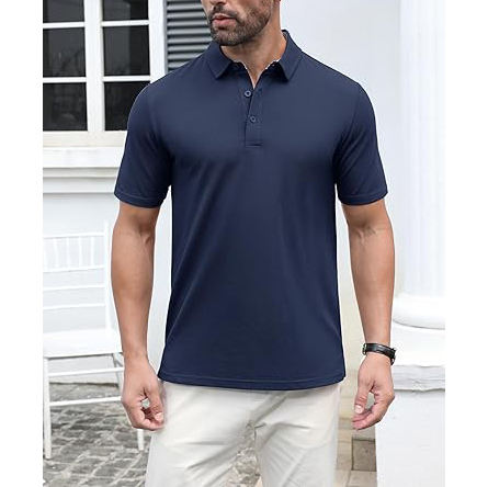 เสื้อโปโลผู้ชายทรงปกติ เนื้อผ้านุ่ม ระบายอากาศได้ดี ดีไซน์กระดุมคอแบบคลาสสิก สวมใส่สบาย เหมาะสำหรับใส่ลำลองในฤดูร้อน หรือใส่ได้ทุกวัน
