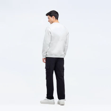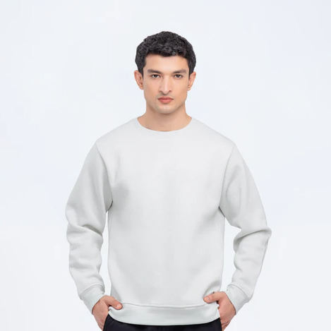 เสื้อสเวตเตอร์คอกลมสำหรับผู้ชาย, 100% บ็อกซี่ฟิตคอกลมพิมพ์ลายพัฟฟ์เทอร์รี่พร้อมไหล่ตกสำหรับฤดูหนาว