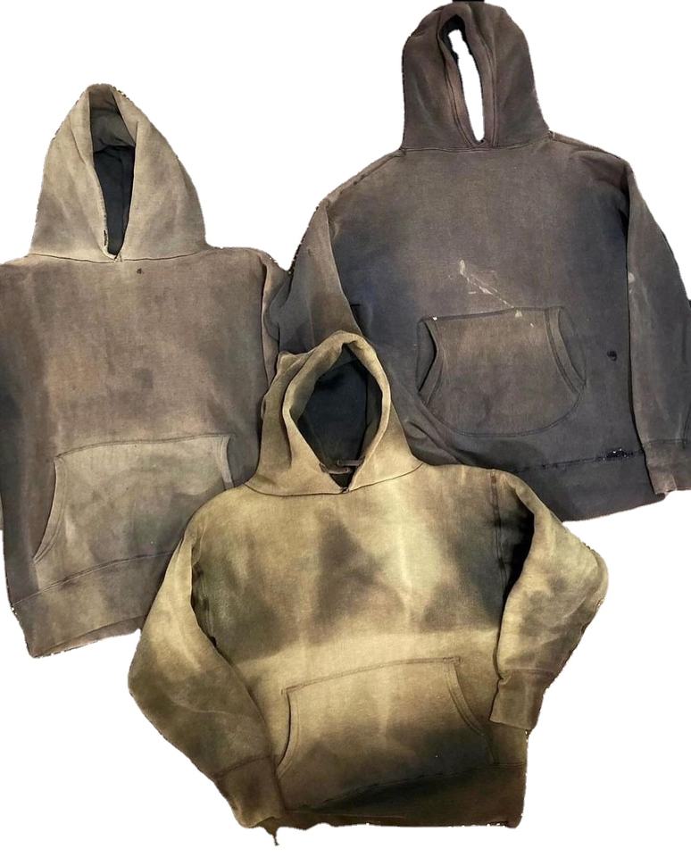 เสื้อฮู้ด480GSM ผ้าคอตตอน100% ของผู้ชายผ้าฟรินซ์เทอร์รี่ฟอกสีกรดวินเทจสองชั้นสำหรับฤดูหนาวดูซีดแสงแดด