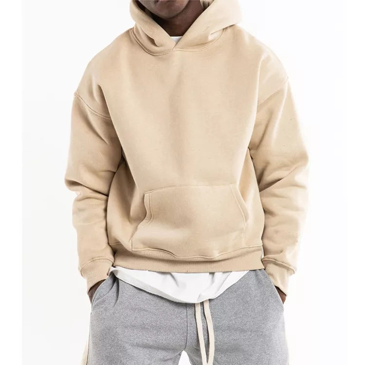 500ผ้าฝ้าย100% ของผู้ชาย GSM มีฮู้ดปักลายสีล้วนทรงแบ็กกี้ทรงหลวมโอเวอร์ไซส์