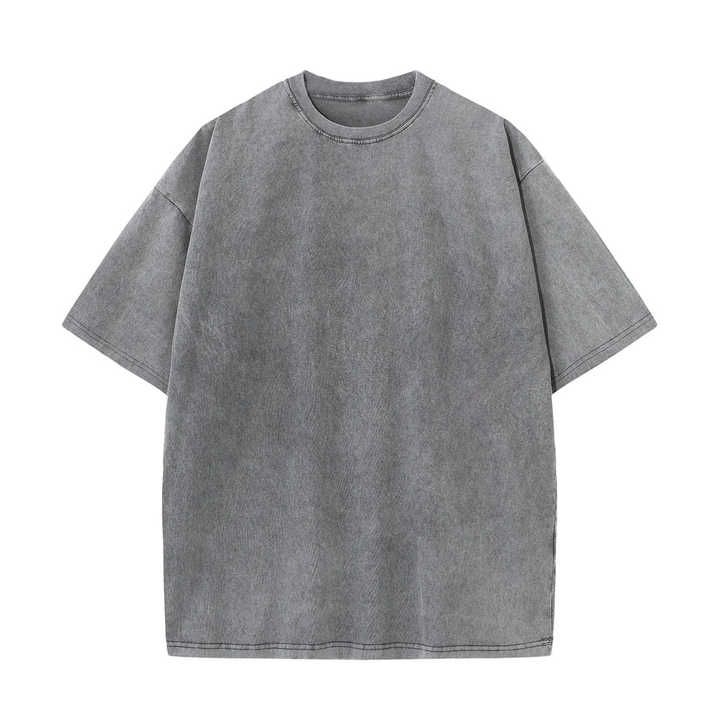 เสื้อยืดคอตตอนซักด้วยกรดสำหรับผู้ชายเสื้อยืดไหล่ตกขนาดพิเศษเสื้อซักหินน้ำหนัก200กรัม