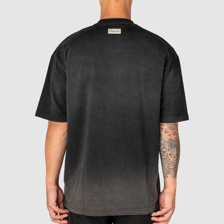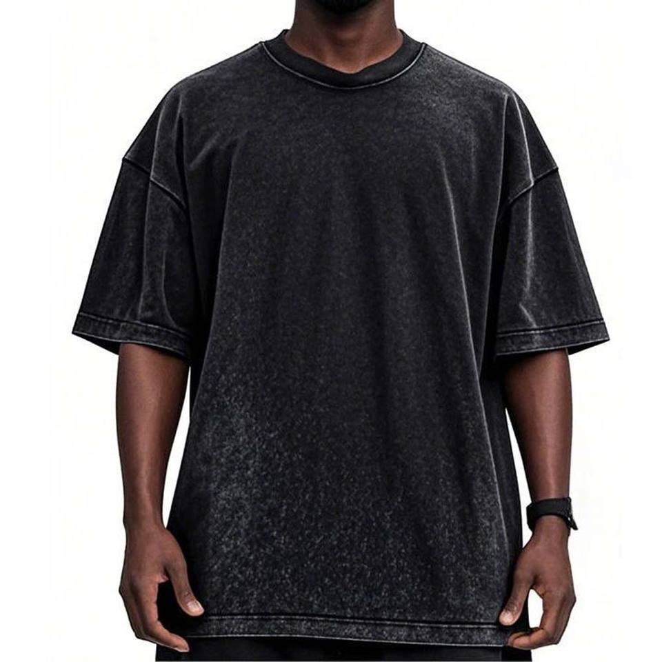 เสื้อยืดแขนสั้นทรงโอเวอร์ไซส์ สตรีทแวร์ ผ้าฝ้าย 100% ระบายอากาศได้ดี คอริบ ย้อมสีแบบแอซิดวอช แต่งดีเทลขาดๆ สำหรับผู้ชาย
