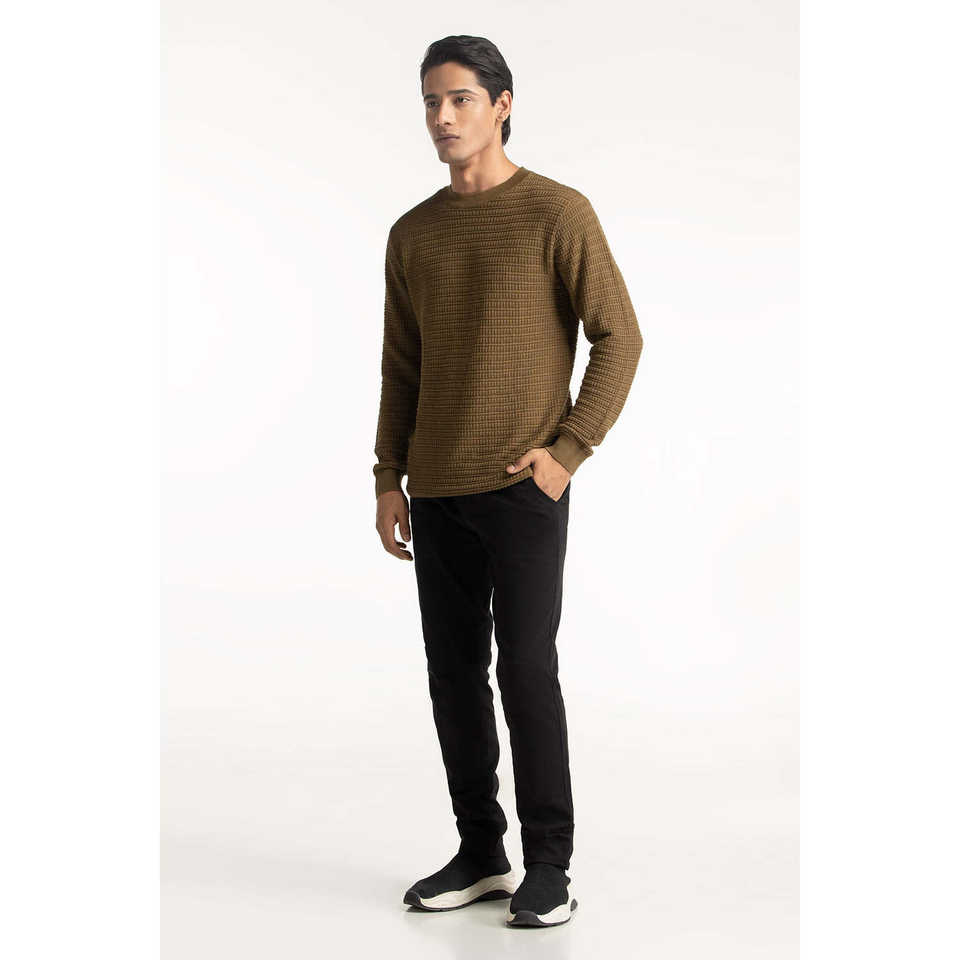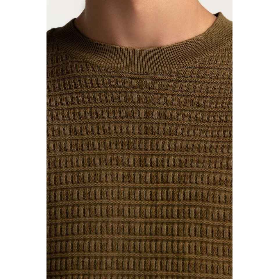 เสื้อสเวตเตอร์คอกลมแขนสั้นผู้ชาย ผ้าฝ้าย 100% สำหรับฤดูหนาว ระบายอากาศได้ดี พิมพ์ลายโลโก้ตัวอักษร MN-SWT-WS24-012