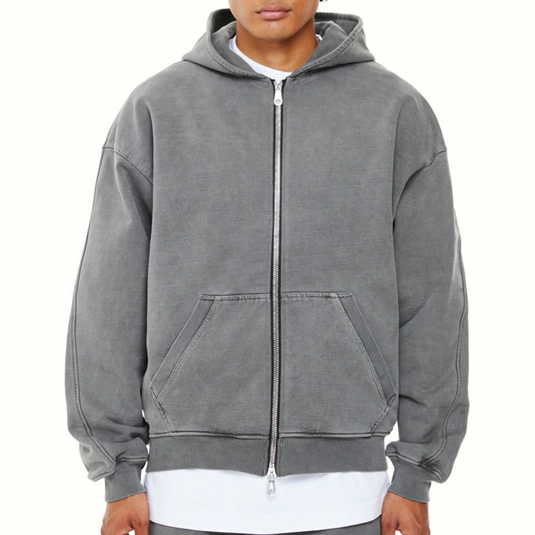 เสื้อฮู้ดดี้ผู้ชายผ้าฝ้าย 100% สกรีนโลโก้ตามสั่ง ทรงหลวม ซิปคู่ แบบมีฮู้ด เสื้อสวมหัวโอเวอร์ไซส์ เนื้อผ้าหนา