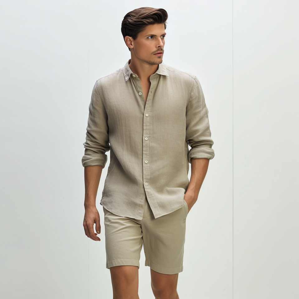 เสื้อเชิ้ตผู้ชายผ้าฝ้าย 100% แขนยาว ระบายอากาศได้ดี นุ่ม สบาย คุณภาพสูง ผ้าซาตินถัก สไตล์ลำลองชายหาด